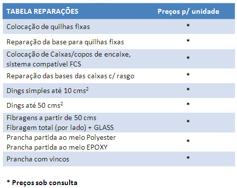 Notes:- In the courses, the acquisition of new classes costs only the difference between the price of the pack that is exhausted and that of what is acquired; The validity of the Registration and / or acquisition of voucher's for courses is 3 months. Prices include all technical material appropriate to each student's surfing level (board, apparel and accessories), unconditional access to support infrastructures (heating and relaxation deck, training equipment, locker room and shower cubicle hot) and 10% discount on shopping in our surf.shop. The duration of the classes is 90 minutes (practical and theoretical). Confirmation of the lesson booking depends on sea and wind conditions. Participation in lectures or courses is covered by Personal Accidents (FPS) and Civil Liability (AXA). |